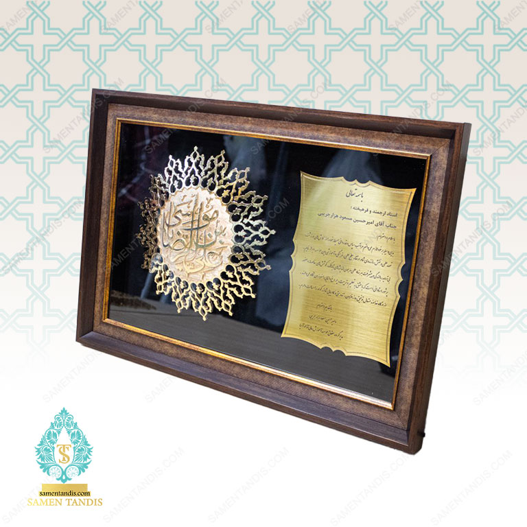 تقدیرنامه دیواری سهبعدی مزین به نام امام رضا (ع)