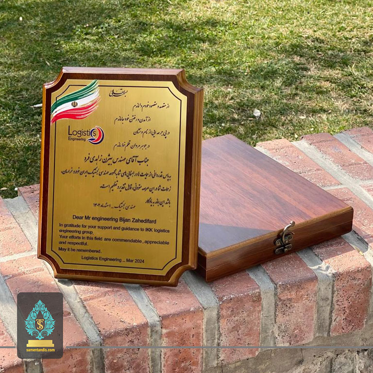 لوح تقدیر تمام چوب با رویه طرح فلز کد L10189