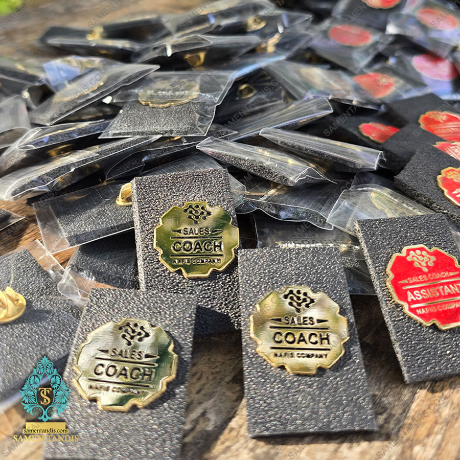 هر نشان با فلز برنج با کیفیت بالا ساخته میشود و برای جلوهای لوکس و با دوام، سطح آن با آبکاری طلا یا روکشهای ویژه پوشانده میشود. طراحی نشانها به گونهای است که میتوان از برجستگی و فرورفتگی، ترکیب مات و براق یا حتی رنگهای سازمانی در آن استفاده کرد، تا هر نشان کاملاً منطبق با هویت برند شما باشد. مشابه تصاویر این محصول که از رنگ قرمز استفاده شده است.