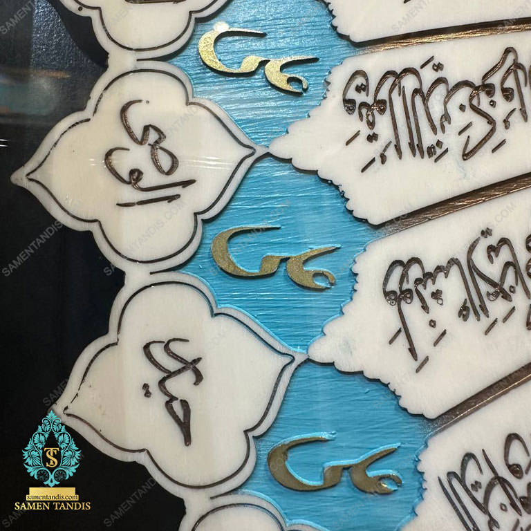 جنس این اثر از رزین باکیفیت بوده که با ظرافت بالا فرمدهی شده و جزئیات هنری آن جلوهای فاخر ایجاد کرده است. ترکیب رنگ سفید و آبی در طراحی، حس آرامش، معنویت و اصالت را القا کرده و آن را به تابلویی بسیار شیک و متفاوت برای دکوراسیون منزل یا محل کار تبدیل میکند.