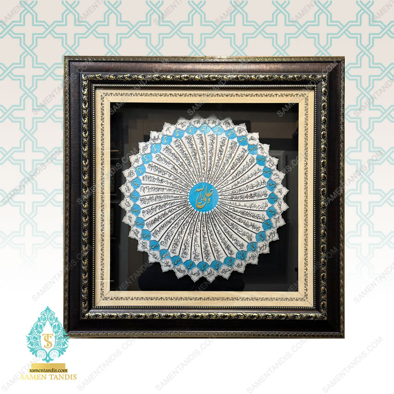تندیس نام و القاب حضرت علی کد T10243 هدیه ای متفاوت با الهام از فضابل و القاب و جایگاه والای امیرمومنین حضرت علی (ع) طراحی شده و انتخابی شایسته برای هدیه روز پدر به شمار میآید. این تابلو تندیس، نمادی از ایمان، شجاعت، عدالت و پدری آسمانی است که معنایی عمیق و ماندگار را به هدیه شما میبخشد.