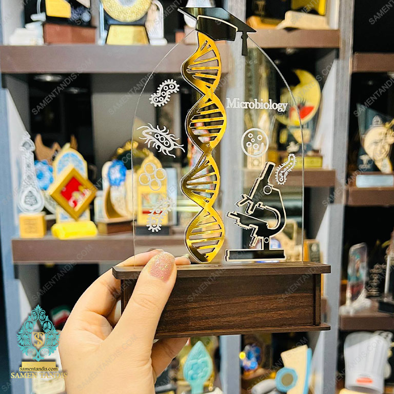 تندیس علوم آزمایشگاهی کد T11113 نمونه از تندیس های طرح کریستال مجموعه ثامن تندیس است و کاملا قابلیت سفارشی سازی و تغییر المان های روی تندیس وجود دارد