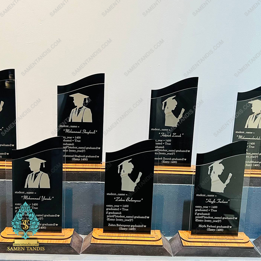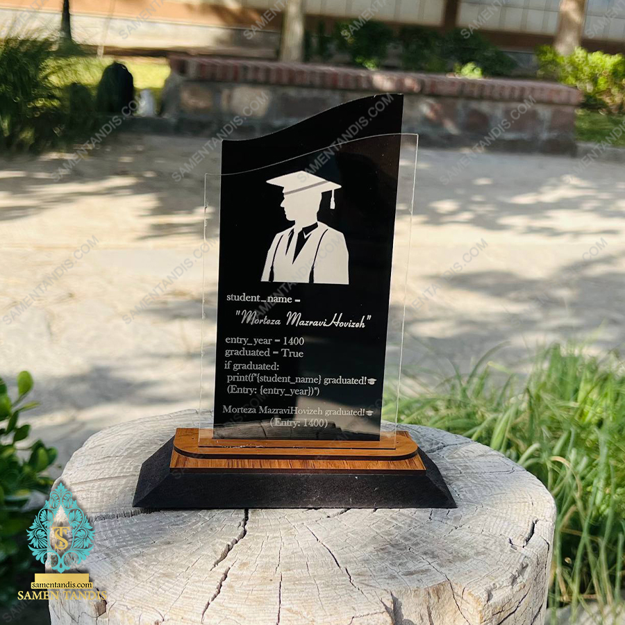 این تندیس به صورت اختصاصی برای رشته کامپیوتر طراحی شده و لوگو و متن آن با الهام از دنیای کد نویسی و تکنولوژی خلق شده است، بنابراین علاوه بر جلوه بصری، حس حرفهای و منحصر به فردی به آن بخشیده است. طراحی اختصاصی این تندیس فارغ التحصیلی کد T140425 باعث میشود تا هر دانشآموختهای با افتخار آن را دریافت کند و در مراسم فارغالتحصیلی خود خاطرهای به یادماندنی بسازد.